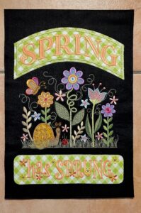 Miss D’s is excited to host Janine Babich again for another of her great embroidery classes. This time it is for the newest of her creations – A Spring Garden Flag.